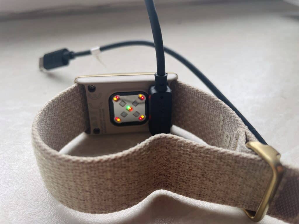 Ebenso überzeugend ist die Akkuleistung. Je nach Anzahl erfasster Aktivitäten hielt eine volle Ladung im Test bis zu anderthalb Wochen. Bei hoher Trainingsfrequenz – insbesondere wenn viele Einheiten automatisch erkannt und mitgetrackt werden (dieses Tracking lässt sich bei Bedarf auch deaktivieren) – verkürzt sich die Laufzeit auf etwa eine Woche, bleibt damit aber weiterhin praxistauglich. Der Akkustand ist jederzeit in der App einsehbar. Sehr angenehm ist zudem das Ladeverhalten: Der Loop ist in deutlich unter einer Stunde wieder voll aufgeladen. Das ist insbesondere deshalb praktisch, weil man ein Erholungs-Wearable idealerweise nicht über Nacht laden möchte, wenn genau dann die wichtigste Messphase stattfindet.