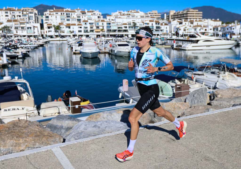 Nicht ganz eine Runde benötigt sie, um sich wieder ins Spiel um den Sieg zu bringen. Im Jachthafen von Puerto Banús setzt die Ironman-Weltmeisterin von 2023 zur entscheidenden Attacke an.