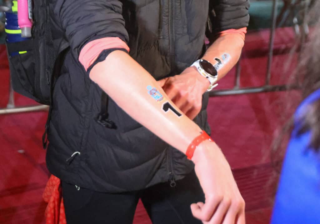 Während sich fast alle Top-Athletinnen rechts einsortieren, wählt Taylor Knibb als einzige die linke Seite.