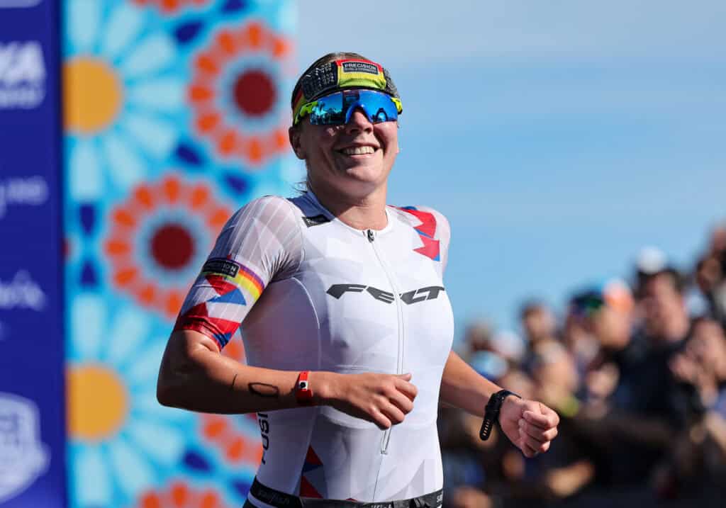 Tränen im Ziel zeigen, was der Siegerin dieser Erfolg bedeutet. In 1:17:14 Stunden gelingt Lucy Charles-Barclay nach dem schnellen Schwimmen auch der beste Halbmarathon. Ihre Endzeit nach 1,9 Kilometern Schwimmen, 90 Kilometern Radfahren und 21,1 Kilometern Laufen: 4:14:54 Stunden.